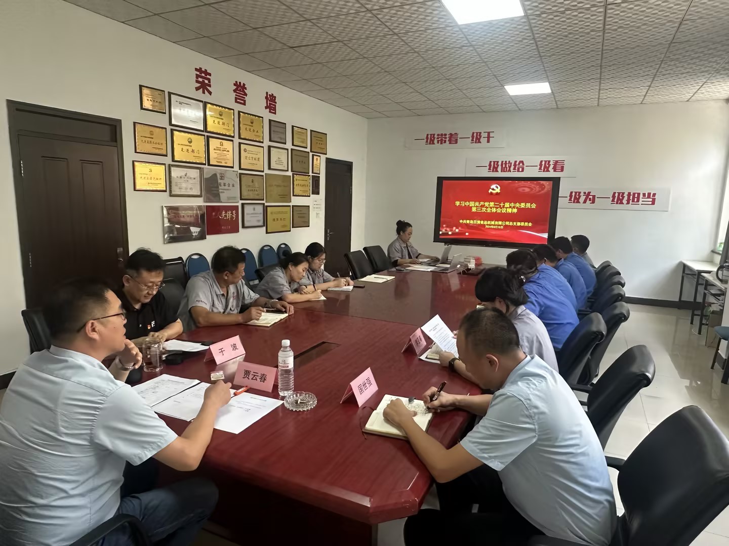 2024年8月15日,日清黨總支書記賈云春帶領全體黨員干部開展“中國共產黨第二十屆中央委員會第三次全體會議”精神學習。中共二十屆三中全會通過的《決定》擘畫了進一步全面深化改革、推進中國式現代化的宏偉藍圖。對此,黨員干部們有深刻學習體會,新時代新征程的“趕考”之路遠未結束,日清公司廣大黨員干部要時刻保持清醒和堅定,埋頭苦干、勇毅前行,堅定不移地按照二十屆三中全會精神指引,著力打造忠誠、干凈、擔當的過硬隊伍,不斷開創工作新局面,為日清公司的發展貢獻一份力量。